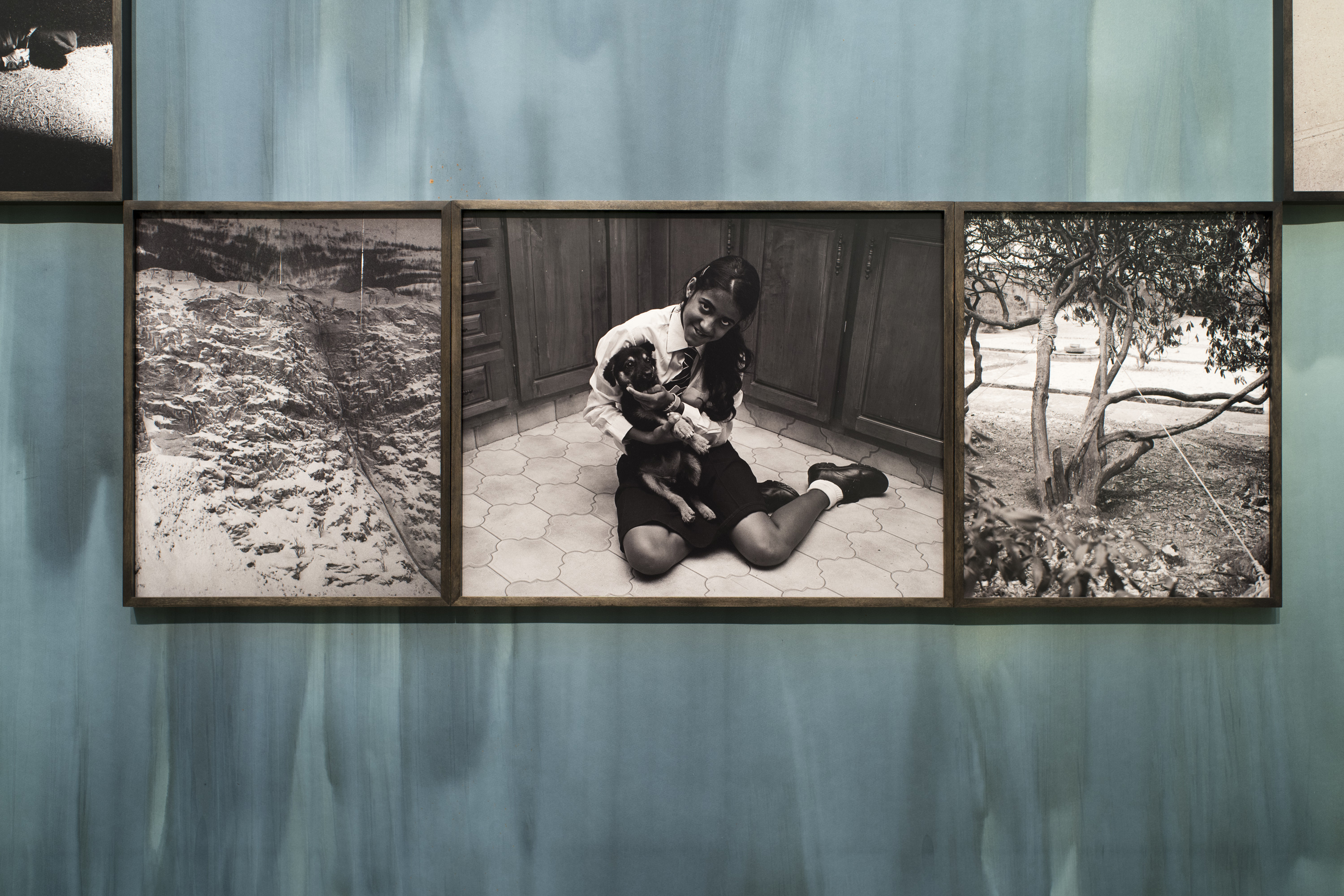 Pairings and triptychs of analogue photographs, made over the course of a decade of travel between sites of personal significance for the artist, hang on constantly developing cyanotype walls. In each grouping, photographs from the different locations are placed in contrast (Harare–Tobago, Carenage–Mutare, Miami–Port-of-Spain) to consider how individuals on either side of the Black Atlantic choose to pose or assemble, and how gestures carry over time or across generations.